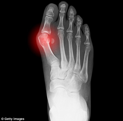 causes red, swollen, warm painful joints. The big toe is the most susceptible joint (‘podagra’) and the pain becomes more intense as the attack progresses.